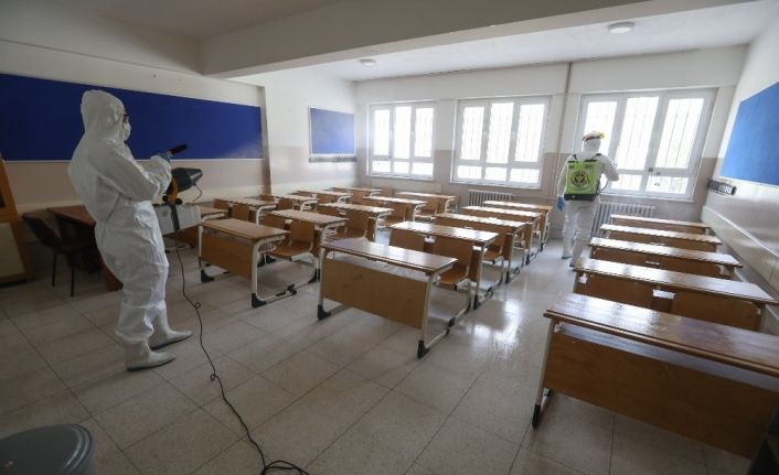Belediye ekipleri, pandemi sonuna kadar belirli periyotlarla düzenli olarak dezenfekte çalışmalarına ilçedeki tüm okullarda devam edecek.