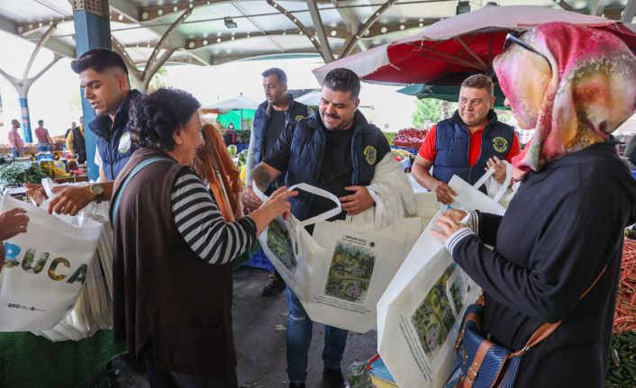 Buca Belediyesi Kültür ve Sosyal İşler Müdürlüğü, çevre kirliliğine karşı duyarlılığı artırmak ve sıfır atık anlayışına dikkat çekebilmek için kentte yer alan pazar yerlerinde çanta dağıtımı yaptı.