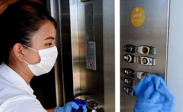 ASANSÖRLER DEZENFEKTE EDİLİYOR.