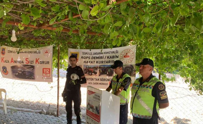 Çeşme Jandarma Komutanlığı ve Çeşme Emniyet Müdürlüğü ile iş birliği yapan Çeşme Ziraat Odası Başkanı Ziraat Mühendisi Süleyman Özer, yaz aylarında Çeşme’de trafik yoğunluğunun artması nedeniyle traktörü olan tarım üreticilerinin güvenli sürüş yapabilmeleri için bilgilendirilmelerini sağladı. Köy kahvesindeki toplantıya, Germiyan Mahallesi Muhtarı Işık Kaya da katıldı. Germiyan köy kahvesinde toplanan tarım üreticileri, jandarma ve emniyet ekipleri tarafından bilgilendirilirken, traktör sürücülerinin trafikte uyması gereken kurallar anlatıldı. Trafik ekipleri, traktör römorklarına mutlaka reflektör takılması gerektiğini belirterek, "Reflektör tak, görünür ol" diyerek uyardı.