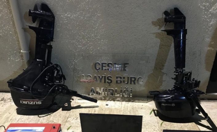 Edinilen bilgiye göre, Çeşme ilçesi Yıldızburnu’nda bağlı olan teknelerden; iki adet tekne motoru, iki akü ve bir televizyon çalındı. Çeşme İlçe Emniyet Müdürlüğü Asayiş Büro Amirliği ekipleri, hırsızlık olayı üzerine çalışma başlatırken, hakkında çok sayıda suç kaydı bulunan İ.B.’yi yakaladı. Şüpheliyi sorgulayan ekipler, aldıkları bilgi üzerine çok sayıda suç kayıtları bulunan A.B. ve B.K.’yı da gözaltına aldı. İki kişi, İzmir’in Konak ilçesinde çaldıkları malzemelerle birlikte yakalandı. Gözaltına alınan iki kişi, emniyete götürüldü.