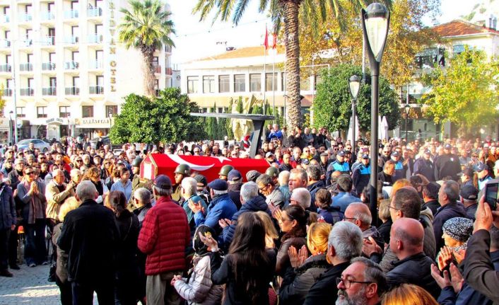 Çeşme’de 20 yıl belediye başkanlığı yapan Ahmet Faik Tütüncüoğlu (88), 20 Aralık’ta yaşamını yitirdi. Tütüncüoğlu’nun Türk bayrağına sarılı naaşı askeri törenin yapılacağı Çeşme Belediyesi önüne getirildi.