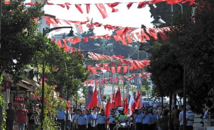 Cumhuriyet Meydanında sona eren yürüyüşün ardından, ilçe protokolü, siyasi partiler ve STK temsilcileri Atatürk anıtına çelenk sundu.