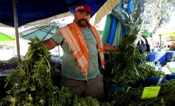 Çeşme pazarlarının en renkli siması "Minik Pala" lakaplı Eşref Tunç, doğadan topladığı taze otlarla pazar tezgahından lezzet ve şifa sunuyor.