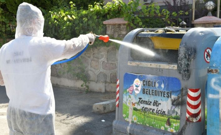 Çiğli Belediyesi Temizlik İşleri Müdürlüğü tarafından sürdürülen çalışmalar kapsamında görevlendirilen ekipler tüm mahallelerde çöp konteynerlerini ve çevresini yoğun şekilde ilaçlıyor. Çalışmalar kapsamında 26 mahallede yaklaşık 700 konteynerin ilaçlanması planlanıyor. Yapılan çalışmalarla karasinek, hamam böceği, pire, kene gibi hastalık taşıyan canlıların halk sağlığını tehdit etmesinin önüne geçilmesi hedefleniyor.