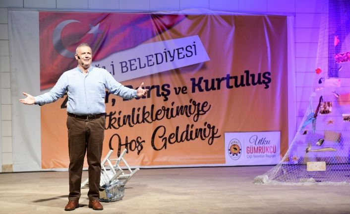Çiğli Belediyesi tarafından düzenlenen “Zafer, Barış ve Kurtuluş” etkinlikleri kapsamında sevilen tiyatro oyuncusu Levent Üzümcü Çiğlililere muhteşem bir sahne performansı sergiledi. Cumhuriyet ve Demokrasi Parkı Amfi Tiyatrosunda ücretsiz olarak düzenlenen tiyatro gösteriminde Levent Üzümcü, “Anlatılan Senin Hikayendir” isimli tek kişilik oyunuyla büyük alkış topladı. Geniş bir izleyici kitlesi tarafından takip edilen geceye, meclis üyeleri, muhtarlar ile çeşitli sivil toplum kuruluşu temsilcilerinin yanı sıra 7’den 70’e her yaştan vatandaş katıldı. Üzümcü’nün anılarını anlattığı ancak izleyenlerin de kendi yaşantısından kesitler bulabildiği oyun, büyük bir ilgi ve beğeniyle izlendi.