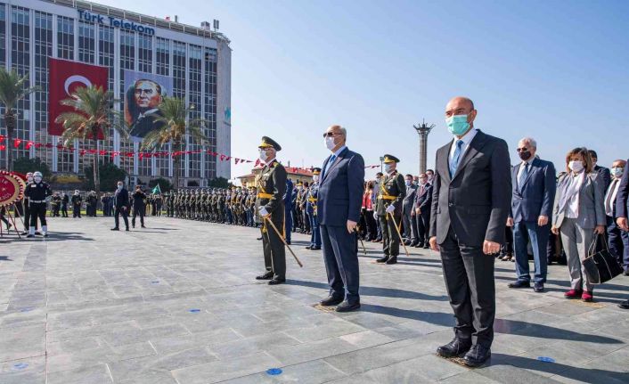İzmir’de 29 Ekim Cumhuriyet Bayramı kutlamaları kapsamında Cumhuriyet Meydanı’nda tören düzenlendi. İzmir Valisi Yavuz Selim Köşger, Ege Ordusu ve Garnizon Komutanı Orgeneral Ali Sivri ve İzmir Büyükşehir Belediye Başkanı Tunç Soyer’in katıldığı törende, Atatürk anıtına çelenk bırakıldı.