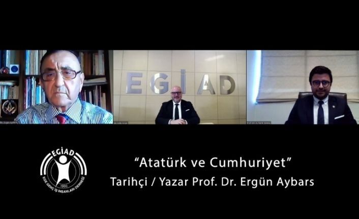 29 Ekim Cumhuriyet Bayramı kutlamaları kapsamında, tarihçi-yazar Prof. Dr. Ergün Aybars’ı konuk eden Ege Genç İş İnsanları Derneği (EGİAD), "Atatürk ve Cumhuriyet" konulu online bir toplantı düzenledi. Pandemi sebebiyle fiziki şartlarda gerçekleştirilemeyen Cumhuriyet Bayramı etkinliklerini online olarak gerçekleştiren EGİAD, çok sayıda iş dünyası temsilcisiyle dijital ortamda Cumhuriyet ve Atatürk’ü konuştu.