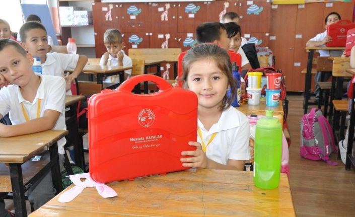 Menderes Belediyesi tarafından okula yeni başlayan öğrencilere eğitim seti hediye edildi.
