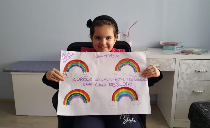 Korona virüsün yayılma hızının diğer hastalıklar gibi olmadığını, virüsün hızla yayıldığını, bu nedenle sadece yaş almış bireylerin değil tüm kişilerin evlerinde kalması gerektiğini belirten öğrenciler, yaptıkları resimlerle tüm dünyaya “evinde kal” çağrısı yaptı.