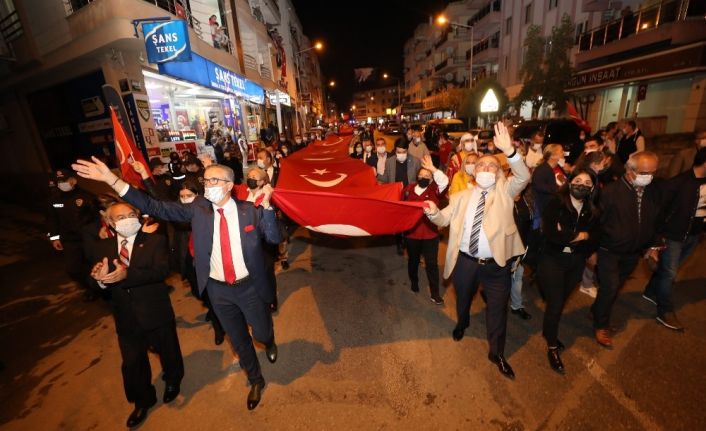 Gaziemir Belediyesinin 29 Ekim Cumhuriyet Bayramı kutlamaları Cumhuriyet Korteji ile başladı. Pandemi kuralları gereği katılımın sınırlı tutulduğu Cumhuriyet Korteji’nde, Abdullah Arda Meydanı’nda toplanan Gaziemirliler, Abdülhamit Yavuz Caddesi ve Atatürk Bulvarı güzergâhı üzerinde bayraklarıyla yürüdü. Gaziemir Belediye Başkanı Halil Arda’nın eşi Deniz Arda ile birlikte katıldığı korteje CHP Gaziemir İlçe Başkanı Kasım Özkan, kadın ve gençlik kolları üyeleri, İYİ Parti Gaziemir İlçe Başkanı Sedat Gök, belediye başkan yardımcıları, meclis üyeleri, STK temsilcileri, muhtarlar ve Gaziemirliler katıldı. Ellerindeki Türk bayraklarıyla sokakları bayram yerine çeviren Gaziemirlilere, bazı vatandaşlar da evlerinden alkışlarla destek verdi. Büyük boy Atatürk posteri ve Türk bayrağının taşındığı, meşalelerin yakıldığı korteje bayraklarıyla katılan Gaziemirliler bando eşliğinde marşlar söyledi. Cumhuriyet Korteji, bandonun notalarına marşlar ve şarkılarla eşlik ederek Gaziemir Festival Alanı’na ulaştı. Gaziemir’de kortej yürüyüşüyle başlayan bayram coşkusu festival alanındaki Kafkas Kartalları Dans Topluluğunun dans gösterisi ve Yılmaz Demirtaş’ın seslendirdiği marşlarla devam etti. Kafkas Kartalları Dans Topluluğu sahneledikleri Kafkas yöresi halk oyunlarıyla izleyenlere görsel şölen yaşattı. Yılmaz Demirtaş ise seslendirdiği marşlarla bayram coşkusunu zirveye taşıdı.