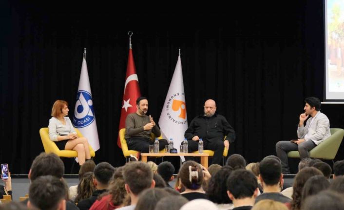 İEÜ Konferans Salonu’nda, gençlerin yoğun katılımıyla gerçekleşen söyleşinin moderatörlüğünü; Gülen Gözkara Saygı ve Batıgün Sarıkaya yaptı. İEÜ Meslek Yüksekokulu Müdürü Emre Küheylan, iki ünlü oyuncuyu kampüste konuk etmekten mutluluk duyduklarını söyleyerek Sarp Apak ve Ahmet Mümtaz Taylan’a katılımlarından dolayı teşekkür etti.
