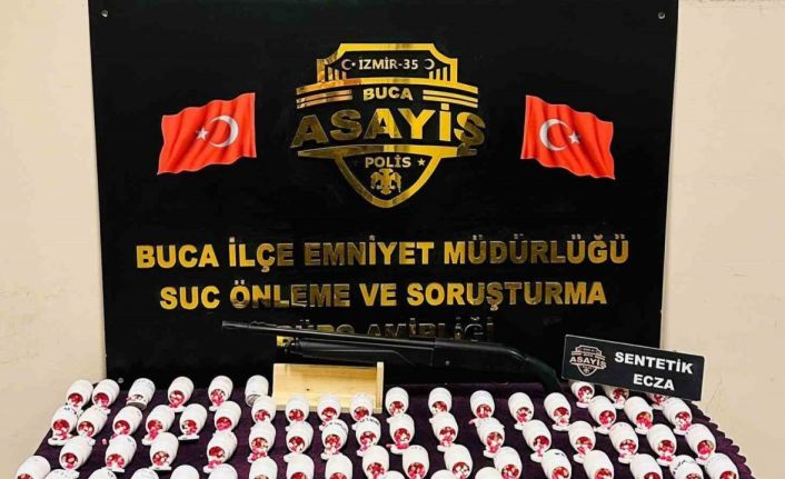 Buca İlçe Emniyet Müdürlüğü ekipleri, uyuşturucu madde ticareti ve imalatını önlemeye yönelik çalışmalar kapsamında Göksu Mahallesi’nde operasyon düzenledi. Gerçekleştirilen çalışmalarda C.A., H.A. ve F.Ç. isimli üç şüpheli yakalanarak gözaltına alındı. Şüphelilerin üzerlerinde ve adreslerinde yapılan aramalarda 4 bin 984 adet sentetik ecza maddesi ile 1 adet pompalı tüfek ele geçirildi.