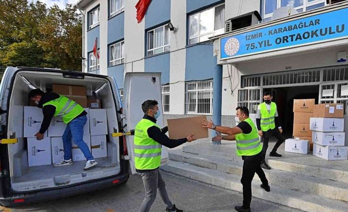 İzmir Büyükşehir Belediyesi kent genelinde 600 okulda öğrenim gören 25 bin öğrenciye bot ve mont dağıtımına başladı. Destek miktarı 2019 yılından bu yana 25 milyon lirayı aştı.