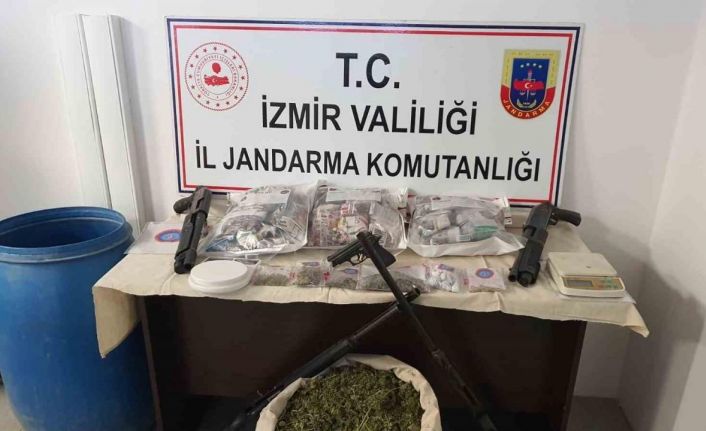 İzmir İl Jandarma Komutanlığına bağlı Kaçakçılık ve Organize Suçlarla Mücadele (KOM) ve Menderes İlçe Jandarma Komutanlığı ekipleri, Menderes ilçesinde bir evde uyuşturucu madde ticareti yaptığı belirlenen şüphelileri tespit etti. Menderes Cumhuriyet Başsavcılığı koordinesinde adrese operasyon gerçekleştiren ekipler, evde kubar esrar, kenevir tohumu, 2 hassas terazi ile 4 ruhsatsız av tüfeği ve 1 kuru sıkı tabanca ele geçirdi.