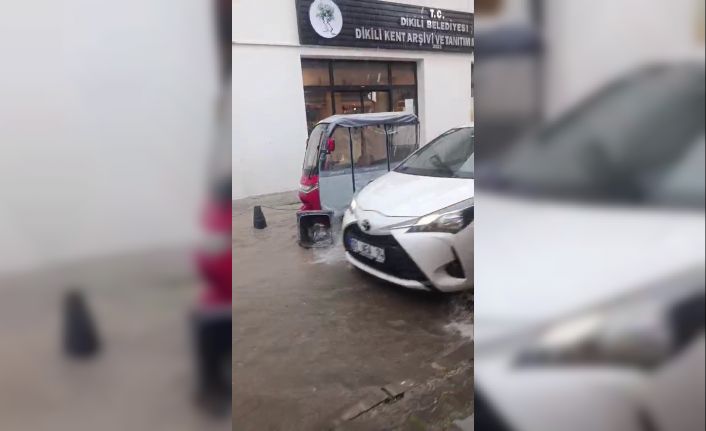 İzmir’in Dikili ilçesinde aniden bastıran sağanak, cadde ve sokakları sular altında bıraktı.