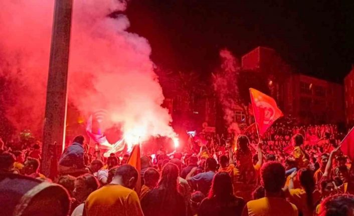 Aliağa’daki Galatasaray taraftarları, şampiyonluğun ardından kentin en önemli meydanlarından biri olan Demokrasi Meydanı’nı doldurdu. Formaları, bayrakları ve atkılarıyla gelen taraftarlar, meydanı adeta bir karnaval alanına çevirdi. Tezahüratlar ve marşlarla gecenin sessizliğini bozan sarı-kırmızılı taraftarlar, yaktıkları meşalelerle de geceyi aydınlattı. Galatasaray taraftarları araçlarıyla kent merkezinde şampiyonluk tur attı.