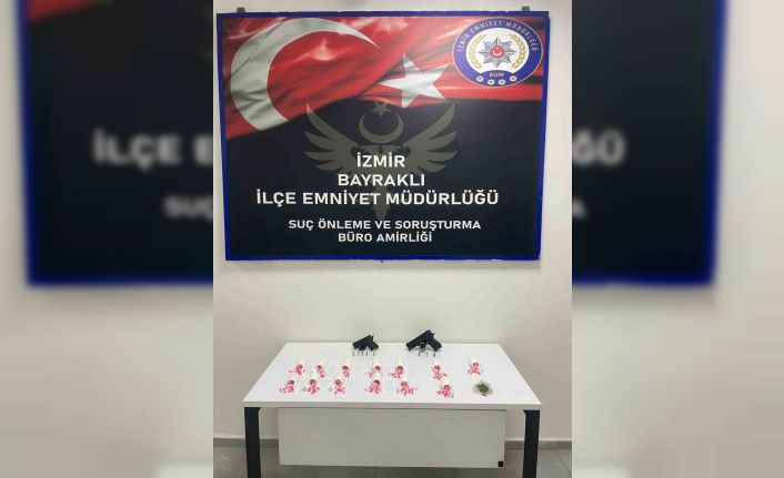 Edinilen bilgiye göre, Bayraklı Suç Önleme ve Soruşturma Büro Amirliği ekipleri, dün uyuşturucu madde ticareti yaptıkları tespit edilen Z.Ç. (26), E.K. (29), M.K.Ç. (14) isimli şüphelileri yakaladı. Gözaltına alınan şahısların üzerinde 2 ruhsatsız tabanca, 664 adet sentetik hap, bir miktar esrar maddesi ele geçirildi. 3 şüphelinin emniyetteki işlemlerin ardından adli makamlara sevk edileceği bildirildi.