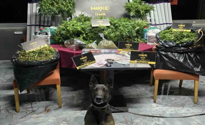 İzmir’de narkotik köpeği ’Rex’in de katıldığı uyuşturucu operasyonlarında yüklü miktarda uyuşturucu ele geçirilirken olayla ilgili gözaltına alınan 2 şüpheliden 1’i tutuklandı.