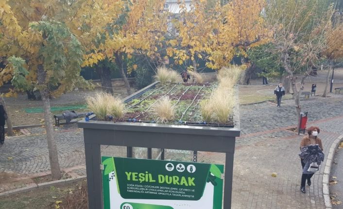 Doğal dokudan yoksun yerler için düşünülen Yeşil Durak Projesi, ilk etapta Halkapınar Aktarma Merkezi için planlandı. Konak Bahribaba Parkı’na konulan ilk örnek beğenilirse Halkapınar’daki tüm otobüs duraklarına uygulanacak. Öte yandan durakların çatısına güneş panelleri de eklenerek, kendi enerjisini üretebilir olması planlanıyor.