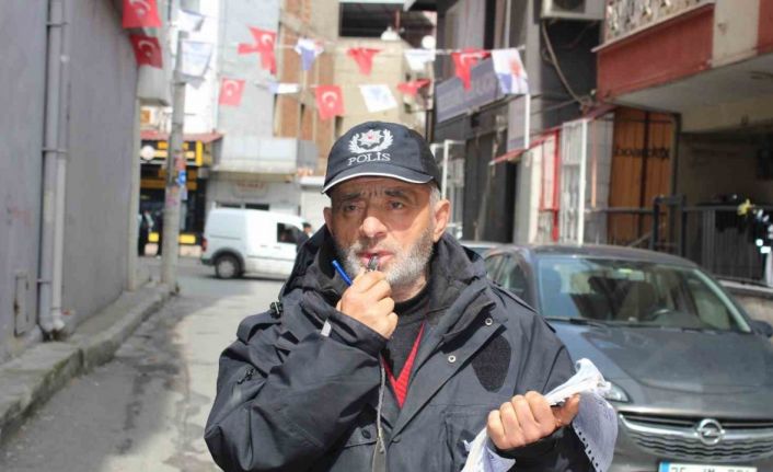 Engelli vatandaş Sinan Mendi (69); üniforması ve düdüğü ile caddeleri arşınlayarak trafik kurallarına uymayanları karalama defterine not ediyor, hatalı vatandaşlara hayali cezalar yazıyor. Eski İzmir Caddesi’nin sevilen yüzü Mendi, bölgenin adeta gönüllü polisi gibi çalışıyor.