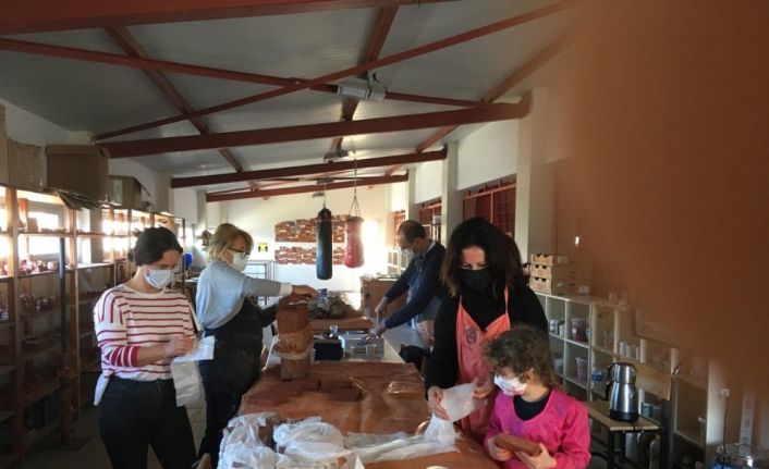 Evlerinde kil çamuru ile hayallerini şekillendireceği "Evde Sanat" projesi etkinliğine 200’e yakın Çeşmeli öğrenci katılıyor.