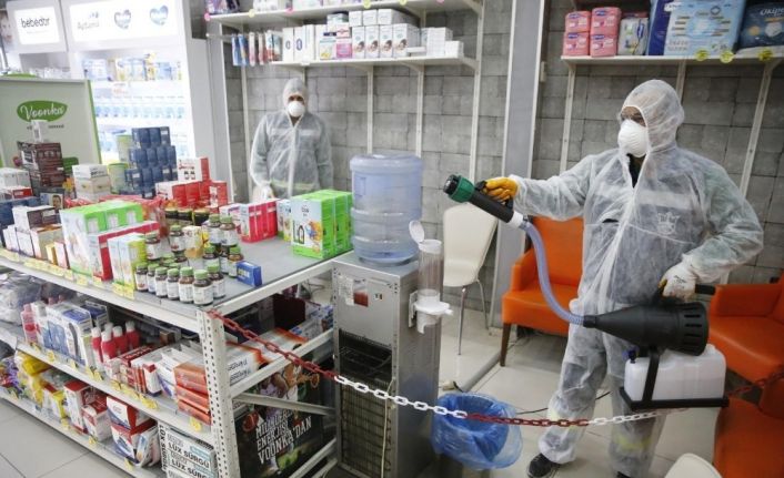 Öte yandan, ilçedeki kamu kurum ve kuruluşları ile sayıları yaklaşık 300 olan eczane, tıbbi malzeme ve sağlık malzemeleri satış yerinde de düzenli olarak dezenfektasyon işlemi yapıldı. Öncelikle Konak Belediyesi hizmet binaları, birimleri ve araçları olmak üzere; muhtarlık binaları, hastaneler, aile sağlığı merkezleri, ibadethaneler, semt ve kültür merkezleri, televizyon, dergi, gazete gibi medya kuruluşları binaları ve ofisleri, siyasi parti merkezleri, emniyet birimleri gibi kurum ve kuruluşlarda da dezenfektasyon yapıldı. Şehir genelinde gerçekleştirilen tüm temizlik ve dezenfektasyon çalışmalarının, düzenli aralıklarla ve hız kesmeden devam edeceği ifade edildi.