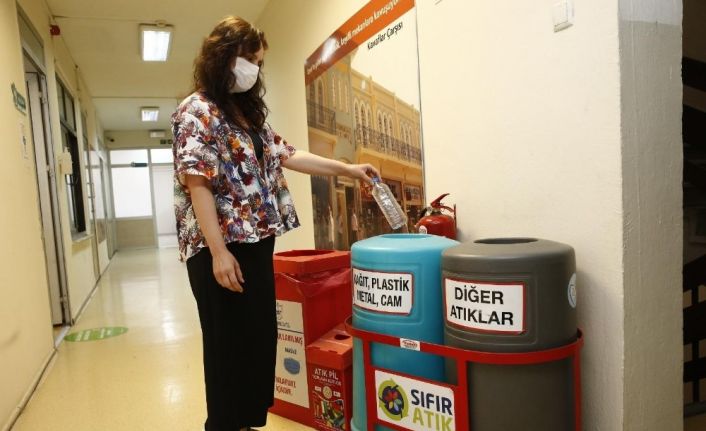 Sıfır Atık Yönetmeliği kapsamında personelin masa altlarında bulunan bireysel çöp kovaları da kaldırılarak, katlarda yer alan ayrıştırma kumbaralarına atılıyor. Geçici Atık Depolama Alanında biriktirilen atıklar ise bertaraf ve geri dönüşüm için bakanlık tarafından yetkilendirilmiş lisanslı firmalara teslim ediliyor.