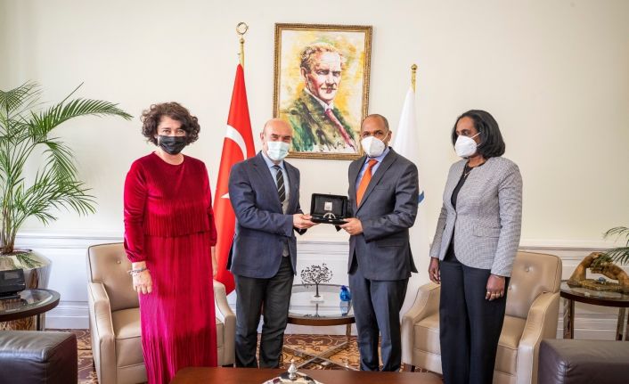 Küba’nın Ankara Büyükelçisi Luis Alberto Amoros Nunez eşi Ticaret Ateşesi Ileana Nunez ile birlikte İzmir Büyükşehir Belediye Başkanı Tunç Soyer’i makamında ziyaret etti. Küba’nın sağlık sektöründe güçlü olduğunu, pek çok ülkeye ilaç ve aşı ihracatı yaptığını belirten Büyükelçi Nunez, İzmir ile Küba arasında sağlık, endüstri, tarım, kozmetik sektörlerinde işbirliği yapmak istediklerini söyledi. Nunez, “İzmir’de çok fazla iş fırsatı var. Belediye başkanı Tunç Soyer’in yaklaşımı ve meslek odalarının katkısı İzmir’i daha da cazip kılıyor. Bu yüzden İzmir’i tercih ediyoruz. İlişkimizin uzun vadeli ve sürdürülebilir olması bizim için çok önemli” diye konuştu.