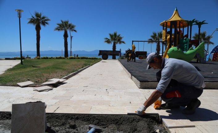İzmir’in Menderes ilçesinde sahil bölgesindeki çalışmalar, turizm sezonunun yaklaşmasıyla hız kazandı.