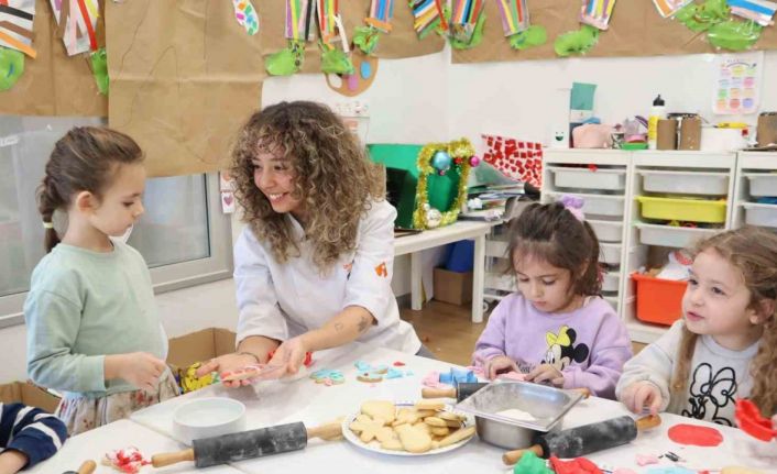 İzmir Ekonomi Üniversitesi (İEÜ) Beyaz Köşk Anaokulu’nda eğitim gören çocuklar, eğlenceli ve rengarenk ‘yılbaşı kurabiyeleri’ hazırlayarak yeni yıl coşkusunu doyasıya yaşadı. Gastronomi ve Mutfak Sanatları Bölümü öğrencileriyle birlikte renkli şeker hamurlarına şekil veren ve kurabiyeleri süsleyen minik şefler, yetenekleriyle büyük beğeni topladı.