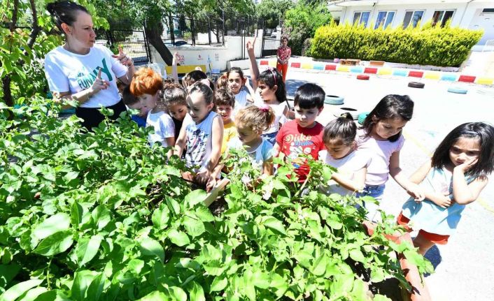 İzmir Büyükşehir Belediyesi İZELMAN Anaokulları’nın EVKA-4 şubesinde kurulan tarım atölyesi ile öğrenciler hem meyve ve sebzelerin gelişimini yakından izliyor hem de üretim sürecine dahil oluyor.