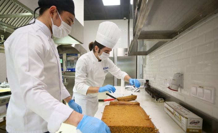 Yaşar Üniversitesi, korona virüsü salgını ile canları pahasına mücadele eden sağlık çalışanlarına destek olmayı sürdürüyor. Yaşar Üniversitesi Tasarım Uygulama ve Araştırma Merkezi (YÜTAM), bu kapsamda hastanelerde görev yapan doktorlar, hemşireler ve sağlık çalışanları için gönüllü olarak koruyucu yüz maskesi üretirken, Uygulamalı Bilimler Yüksekokulu Gastronomi ve Mutfak Sanatları Bölümü’nde de İzmir’de vefakarca ve başarıyla görev yapan sağlık ordusu için lezzetli kekler ve kurabiyeler hazırlanıyor. Bölüm Başkanı Doç. Dr. Seda Genç, Mutfak Şefi Emre Şimşek ve Şef Yardımcısı Ege Özuysal tarafından gerçekleştirilen katkı, Yaşar Üniversitesi Mütevelli Heyet Başkanı Ahmet Yiğitbaşı ve Rektör Prof. Dr. Cemali Dinçer’in desteğiyle sürdürülüyor.