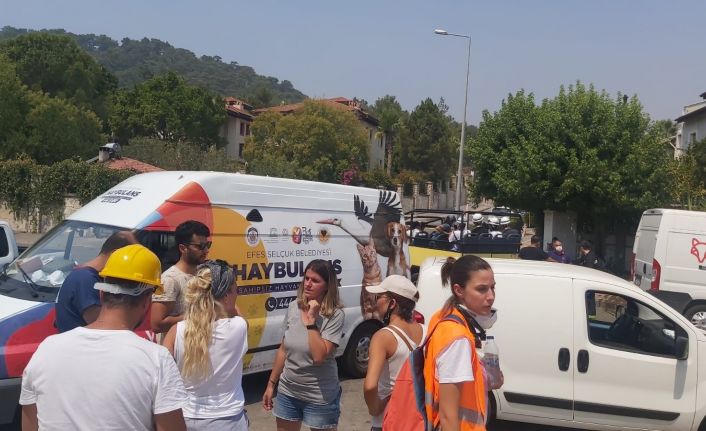 Selçuk Belediyesi, orman yangınından etkilenen Marmaris Armutalan mevkiine Haybulans gönderirken, Haybulans ve veteriner hekim yangından etkilenen can dostların tedavisine destek oluyor.