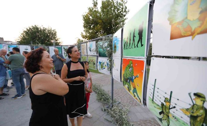 Uluslararası Dünya Barış Günü Karikatür Sergisi 5 Eylül’e kadar İstasyon Meydanı’nda ziyarete açık kalacak.