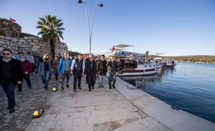 İzmir Büyükşehir Belediye Başkanı Tunç Soyer, Büyükşehir Belediyesi tarafından yenilenen Sığacık Sahili’ni ve eski Sığacık yolu üzerinde yapımı süren park çalışmasını inceledi. Başkan Soyer’e İzmir Büyükşehir Belediyesi Genel Sekreteri Dr. Buğra Gökçe, İzmir Büyükşehir Belediyesi Genel Sekreter Yardımcısı Eser Atak, İzmir Büyükşehir Belediyesi Fen İşleri Dairesi Başkanı Ozan Yılmaz, İzmir Büyükşehir Belediyesi Park ve Bahçeler Dairesi Başkanı Çiğdem Aşıcı, İZBETON Genel Müdürü Heval Savaş Kaya ile bürokratlar eşlik etti. Yeni yürüyüş ve bisiklet yolları, peyzaj çalışmaları ile sahilin yepyeni bir görünüme kavuştuğunu söyleyen Başkan Soyer, 5 bin metrekarelik alanda yaptıkları park düzenlemesi ile Sığacık’a yeni bir yaşam alanı kazandıracaklarını söyledi.