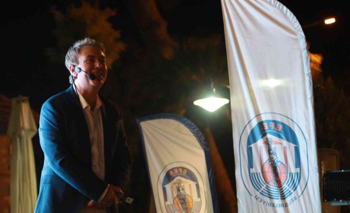 Belediye Başkanı Filiz Ceritoğlu Sengel de, söyleşinin sonunda tarihçi ve yazar Sinan Meydan’a teşekkür etti.