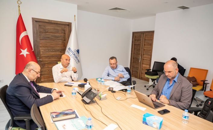 İzmir Büyükşehir Belediye Başkanı Tunç Soyer, korona virüsü önlemleri nedeniyle internet üzerinden yapılan İzmir Ekonomik Kalkınma Koordinasyon Kurulu (İEKKK) toplantısının 99’uncusuna katıldı.