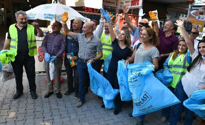 İzmir Büyükşehir Belediyesi’nin 11 ilçede başlattığı temizlik kampanyası devam ediyor. “İzmir’e toz kondurmuyoruz” sloganı ile her hafta başka bir ilçede yürütülen temizlik çalışmalarının Kemeraltı ayağına İzmir Büyükşehir Belediye Başkan Tunç Soyer de katıldı.