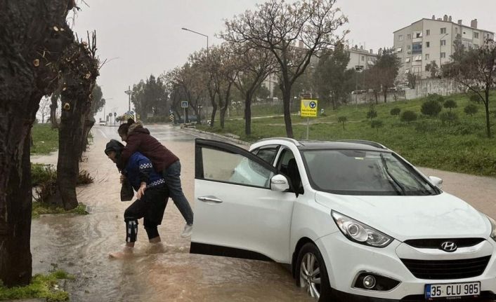 Turuncu alarm verilen İzmir’de etkili olan sağanak yağışlarda sahaya inen İzmir Büyükşehir Belediyesi zabıta ekipleri, mahsur kalan vatandaşları sırtında taşıyarak güvenli alanlara ulaştırdı. Yürekleri ısıtan görüntüler Alsancak başta olmak üzere kentin birçok noktasında yaşandı.