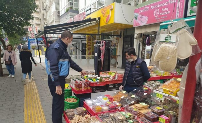 İzmir Büyükşehir Belediyesine bağlı zabıta ekipleri gıda fiyatlarını ve satılma koşullarını denetlemeye devam ediyor. Sosyal mesafeyi gösteren etiketler de yaygınlaştırılıyor.