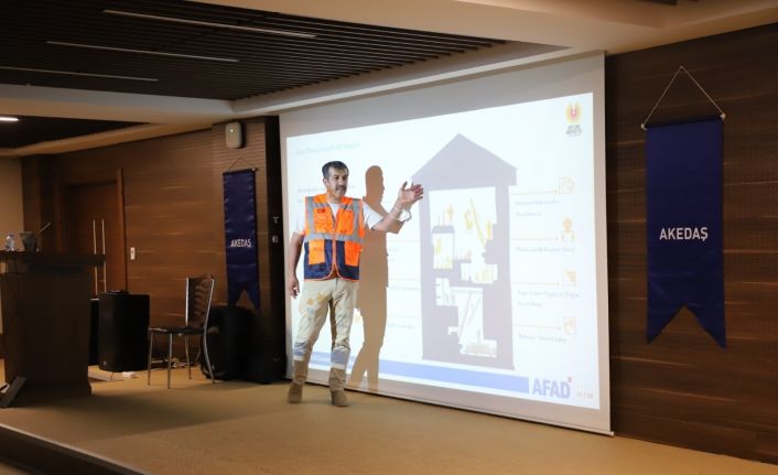 Akedaş Elektrik Dağıtım A.Ş. toplantı salonunda “2021 Afet Eğitim Yılı” çerçevesinde gerçekleşen eğitimde Kahramanmaraş AFAD İl Müdürlüğü bünyesinde görevli AFAD Eğitim Uzmanı Mehmet Arık tarafından afet öncesi, afet sırası ve sonrası ile ilgili yapılması gerekenlere dair temel bilgi ve kavramlar personellere aktarıldı.