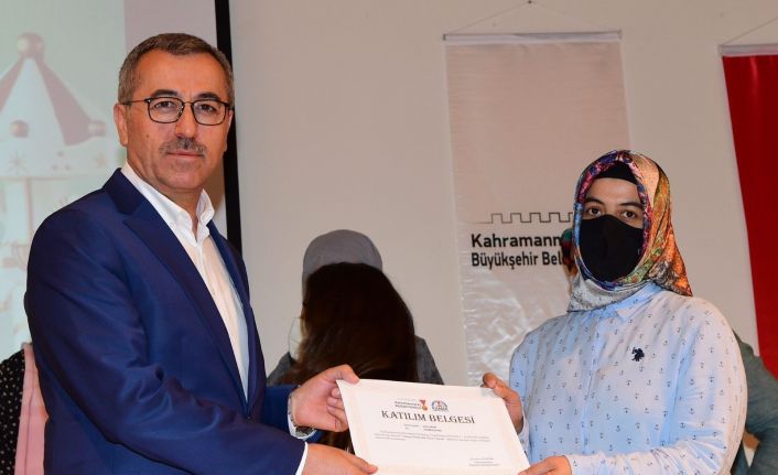 Kahramanmaraş Büyükşehir Belediye Başkanı Hayrettin Güngör, eğitimlerini tamamlayan Ahşap Oyuncak Atölyesi kursiyerlerine sertifikalarını verdi.