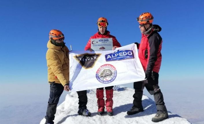 Kahramanmaraş’ta faaliyet gösteren Dağ Aslanları Dağcılık ve Doğa Sporları Kulübünün 5 üyesi Ağrı Dağı tırmanışına 2 bin 200 rakımlı bölgeden başladı. 3 gün sonra dağın zirvesine ulaşan 5 dağcı Kahramanmaraş’ın gastronomi turizmine katkı sunan Alpedo Kervan Pastanelerinin logolarının bulunduğu bayrağı açtı.
