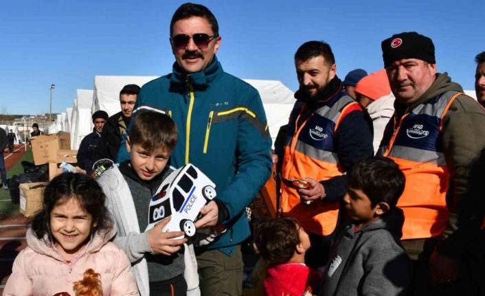 Deprem bölgesinde koordinasyonu sağlayan Kırıkkale Valisi Bülent Tekbıyıkoğlu, çocuklarla yakından ilgilenerek, oyuncak hediye ediyor. Tekbıyıkoğlu ile çocukların yürekleri ısıtan görüntüleri de objektiflere yansıdı.