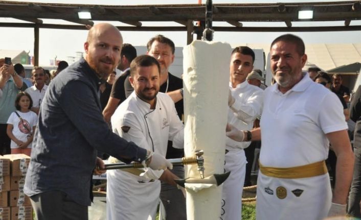Alpedo-Kervan Lezzet Grubu Yönetim Kurulu Başkanı Sami Kervancıoğlu, Etnospor Konfederasyonu Başkanı Necmettin Bilal Erdoğan, Geleneksel Spor Dalları Federasyon Başkanı Hakan Kazancı, Türkiye Geleneksel Güreşler Federasyonu Başkanı İbrahim Türkiş ve Etnospor Konfederasyonu Başkan Vekili Hakan Kazancı, çengelle asılan Maraş dondurmasını satır ve balta ile keserek sporculara ikram etti.