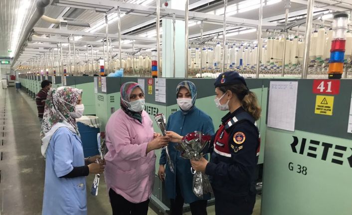 Kahramanmaraş’ta Jandarma ekipleri,1 Mayıs Emek ve Dayanışma Günü kapsamında işçilere çiçek dağıttı.