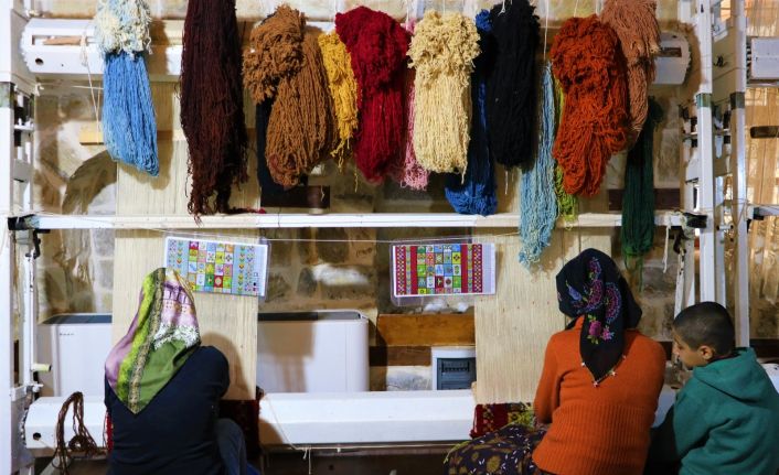 Kahramanmaraş’ta Roma mezarının bulunduğu tarihi konakta, el emeği göz nuru el dokuma halılar Germanicia ve Dulkadirli motifleriyle ilmek ilmek işleniyor.