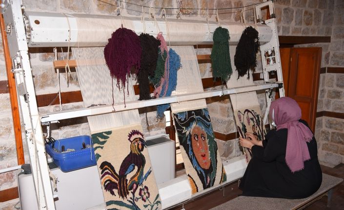 Kahramanmaraş’ta, Dulkadiroğlu Belediyesi ve Halk Eğitim Merkezi iş birliğiyle düzenlenen kursta Germenicia mozaikleri halılara işleniyor.