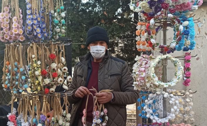 Tarihi Kapalı Çarşıda 7 yıldır el emeği göz nuru ürünlerini satarak geçimini sağlayan 4 çocuk babası Mustafa Gül, “Çiçekten taçlar yaparak hem paramı kazanıyorum hem de insanları mutlu etmenin huzurunu yaşıyorum” dedi.